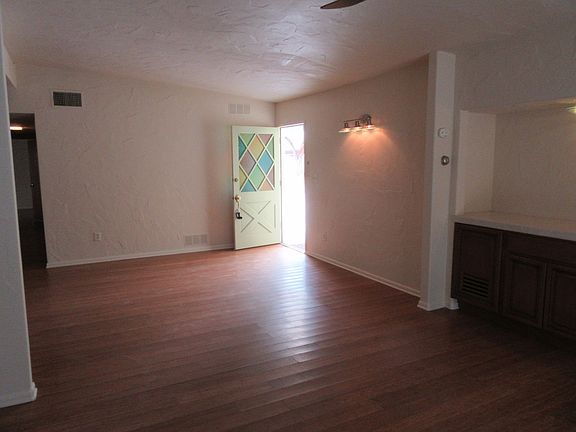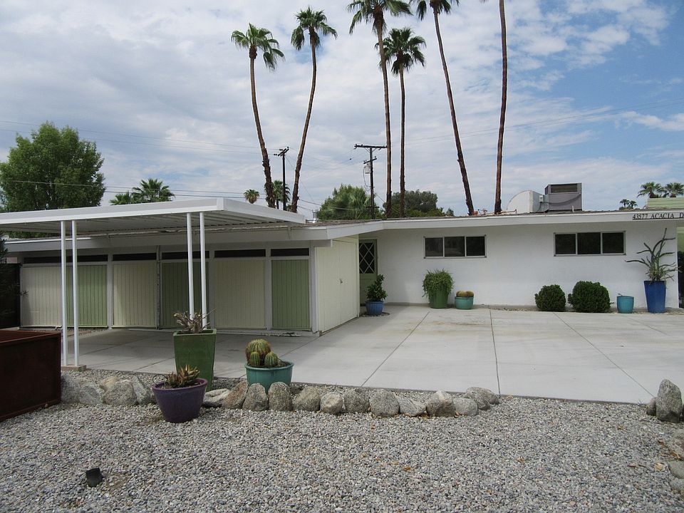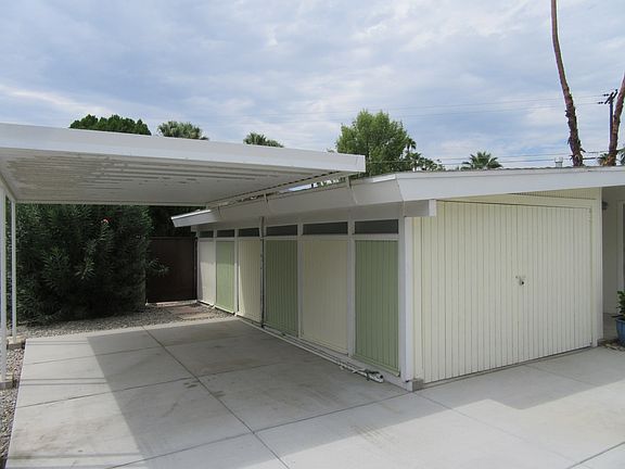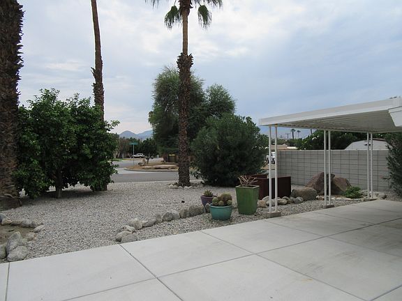 Corner lot Mid-century pool home near College of the Desert. This charming single family home features bamboo wood flooring throughout, ceiling fans, living room with bar area, a master suite with private bath, and a cute vintage kitchen. Outside the home you will find a huge backyard with a full width wrap around covered patio, garage with a washer and dryer, a carport, RV parking, a deep swimming pool, storage sheds, and an incredible mountain view. Pool maintenance and landscaping maintenance is included at $1745 per month on an annual lease. Please call the property manager at 760-895-1430 for more information or to schedule an appointment.