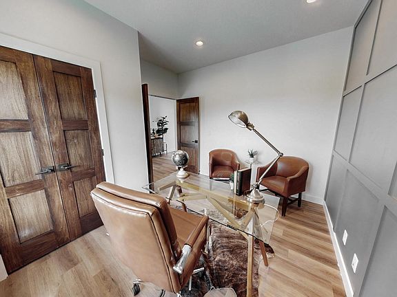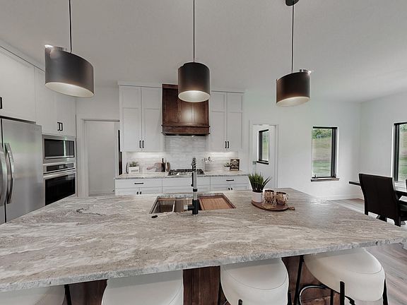 Experience the modern farmhouse charm from the moment you step inside, greeted by a grand stone arch entry that sets the stage for the captivating interior. Picture a beautiful white kitchen accented with warm wood tones, a striking gas fireplace, and a convenient main floor office. Adding to the allure, there's a specially designed mudroom/dog spa for your furry companion. Upstairs, discover three thoughtfully laid out rooms, including a primary suite with a spa-like bath and direct access to the laundry room from the walk-in closet. The oversized heated garage provides ample storage space and parking, while amenities like the wet bar and gym room make entertaining and staying active a breeze. This home effortlessly combines style, functionality, and comfort for an unmatched living experience.