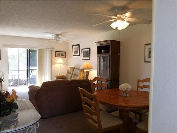4-105 NO STAIRS to climb in this hard to come by first floor. Lovely view from a lovingly cared for two bed two bath condo. It boasts a white and bright updated refaced kitchen. Easy care fresh and clean carpet and tile. It comes very nicely furnished. Located in a secluded yet convenient lush and green 55+ community with ample parking and many amenities. Warm and friendly people add to the pleasure of living here full or part time. A very active social life ensures you will feel welcome and never be bored. Or just relax and enjoy those balmy breezes and view of the pond on the public golf course from your private screened lanai. agents see remarks