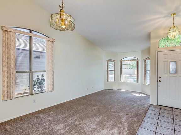 Welcome to your new home sweet home! Well maintained home with large picture windows, and neutral paint tones that lead you throughout the house when you enter. Entertain your guests in the front dining room while the chef in the family creates a culinary delight! The eat in kitchen has a center island with breakfast bar, new stainless steel appliances, and lite cabinets. Relax in the family room while enjoying the lovely view of the private and green backyard. All of the bedrooms include plush carpeting, and ceiling fans. The spacious master retreat has a sitting area, and an en-suite which includes a double sink vanity with granite, a large walk in closet, a walk in shower, and a garden tub. Sit under the covered patio in the backyard. A/C is 2015/Hot water heater 2018! Conveniently cated near desert ridge mall. This house will not last long! Come and see it today!
