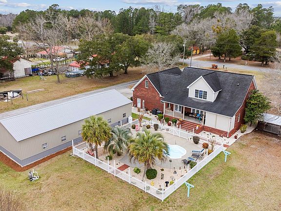 This Gorgeous 4 Bedrooms, 3.5 baths, and private 5 car garage custom home located under 8 miles to downtown Conway! This home gives a very open welcome from the moment you walk through the front door with the open floor plan, hardwood floors, updated kitchen, and natural light! Homeowners can sit back and relax on their porch overlooking their private pool and yard. The 5 Car garage also includes heated/cooled 440 sq ft office/home gym. Upgrades include 2 New HVACS 2023, new mini shed with electric, 70x32 garage 2019, pool pump, grinder, and filter system 2023, and more! Commercial buildings in the rear can be purchased with electric, water, and mother in law suite in addition to home. Additional photos of garage upon request. The home is located minutes away to dining, shopping, walking trails,  schools ,grocery stores, golf courses ,Intracoastal waterway, Hospitals, and more!