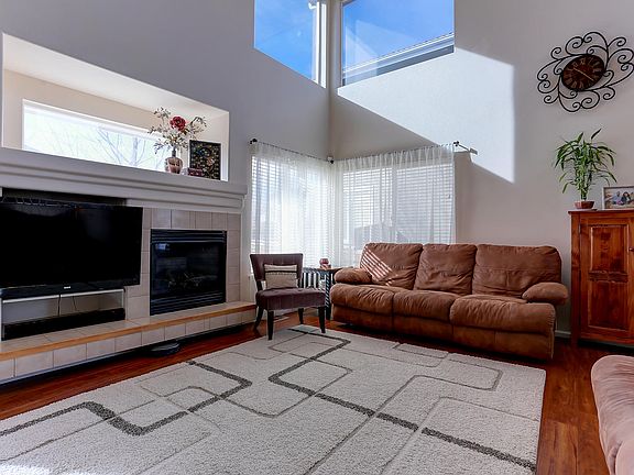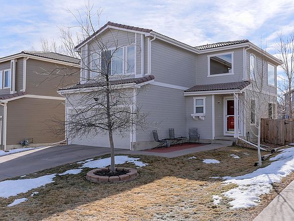 Super great 3 bedroom, 4 bath two story on a cul-de-sac! Abundant natural light flows throughout this home. Beautiful hand scraped engineered hardwood floors cover the open main level. A tile entry with a 1/2 bath meet you at the front door and the living room boasts a two-story ceiling and gas fireplace. Living room connects to an open kitchen with dining area and a sliding glass door for easy indoor/outdoor entertaining on your giant deck! All stainless steel appliances stay as well as the clothes washer and dryer in the laundry room. The master bedroom has an en-suite bath with double vanity and walk-in closet. The second bedroom offers a plantation shutter overlook and shares the full hall bath. Spacious finished basement and 3/4 bath serve as either the third bedroom or a recreation room to fit your lifestyle. Fully fenced rear yard with mature trees. Central A/C and heat. Garage storage area. So much more! Highlands Ranch amenities include four recreation centers, parks, trails and open space. The home sits convenient to shopping and schools. Schedule your private showing today!