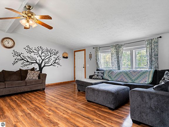 Nestled in the picturesque village of Mesick, this stunning Ranch-style home offers a perfect blend of modern updates and serene country living. Situated on a generous 3-acre lot, the property features four spacious bedrooms and three bathrooms. The recently updated home includes new LVP flooring and updated trim, along with a newer shingled roof for added peace of mind. The expansive wrap-around deck provides an ideal space for outdoor relaxation and entertaining. A detached garage includes a versatile bonus room above, perfect for a home office, gym, or guest suite. Conveniently located just three minutes from town and schools, Mesick is perfect for outdoor enthusiasts with the Manistee River, backwaters lake, Tippy Dam, and many trails for riding and snowmobiling. They host the annual Mushroom Festival every year and the Blessing of the Jeeps. This home offers the tranquility of rural life with easy access to the amenities of Cadillac and Traverse City, both less than 30 minutes away, and Lake Michigan, just an hour's drive. Don’t miss the opportunity to make this beautiful property your new home.