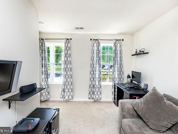 Welcome to this beautiful rarely found like new Bozzuto built brick front end unit townhome with 2 car garage. Shows like a model!Fabulous layout with main level office/den/guest bedroom with powder room and hardwood flooring in foyer.Upper level 1 features a gourmet kitchen with Island, recessed lighting, stainless steel appliances and combined dining room complete with hardwood floors. You will love how the sunlit family room with it's warm and bright atmosphere opens into the kitchen area for family gatherings. Upper level 2 is complete with it's own master ensuite with private bath featuring dual vanities as well as tiled shower and flooring. There are two additional spacious bedrooms sharing a full tub/shower tiled combo as well. Completing this amazing home is a rear deck for your summertime enjoyment. See today! This one won't last long!