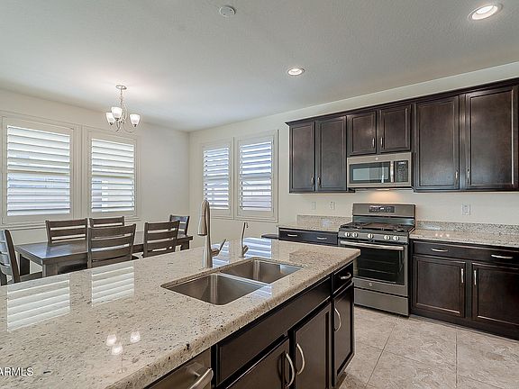 Look no further! You have found the home you longed for! Boasting charming curb appeal with a meticulously maintained landscaping both front & back! As you walk inside the spacious floor plan you will see soaring ceilings that lead you to your gorgeous kitchen with quartz counter tops & ample amounts of storage. Check out your private backyard and enjoy your morning coffee or watch the lovely sunsets while the kids play. Upstairs you will find a spacious loft & of course, the grandiose master bedroom, which includes a large walk-in closet, double sinks, as well as your private balcony where you can enjoy panoramic moutain views. Eastmark community offers a resort style community pool, splash pad, plenty of parks, dog parks, baseball fields, club house with arcade games & more!