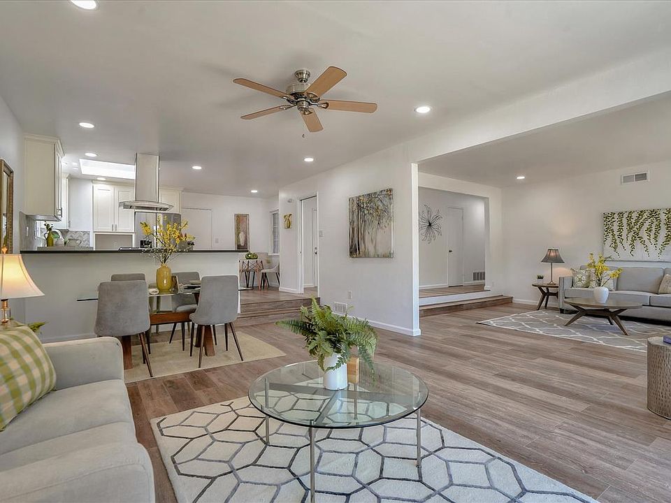 Stunning 4 bedroom, 2 bath home in a lovely neighborhood. West Facing. Good schools. This one checks all the boxes! Completely updated with New kitchen, New appliances featuring an amazing gas stove, new flooring, new recessed lights, new landscaping, and so much more! This home has a gorgeous floor plan that connects the living areas to give a very large feel and wonderful flow to the home. Nice and bright this home invites you in to stay and enjoy all of its great amenities. The backyard is spacious, pavers fill the patio area and create a very nice walk way, the new grass area has a new sprinkler system on timer and also two lovely fruit trees give a warm feel to the whole space and tie it all together. This is the home you've been waiting for this summer. WELCOME HOME!