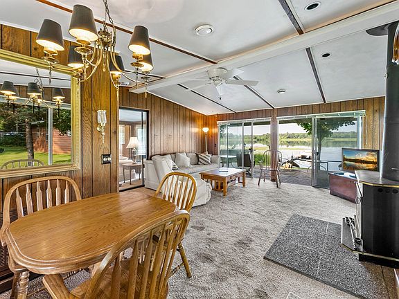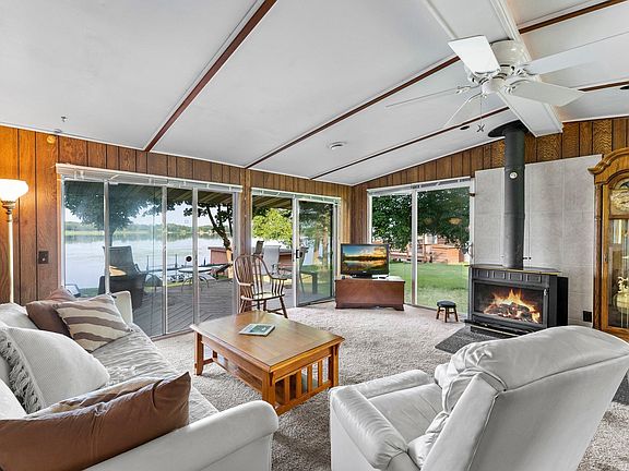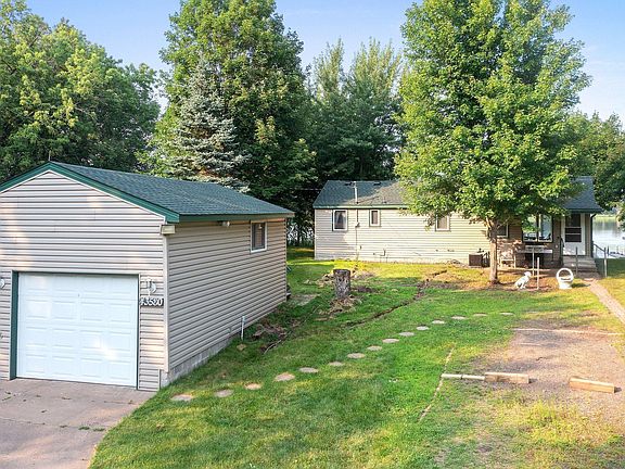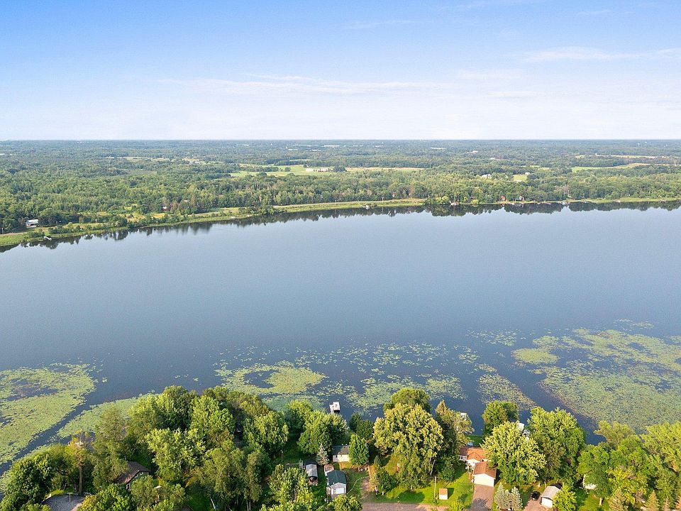 Incredible lakefront property is an easy commute to the Twin Cities and is loaded with features and extras. The beachfront lot has 83' of lakeshore, a slight gradual down to the water level and the 60' dock is included! The picturesque fully navigable lake is over 50' deep with an abundance of all variety of fish. The huge lakefront deck is 30' x 10' with sweeping views. The house has 2 bedrooms, kitchen, living room and a separate family room with vaulted ceilings and a wood burning wood stove. There is also a 20'x10' "boat house", a 12'x10' storage shed and the "bonus room" over the garage is 16'x12' with heat and AC. Hurry on this rare lakefront opportunity as this one is sure to sell fast!
