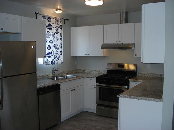 Upstairs with Balcony and view, new kitchen cabinets, drapes, paint. Close to everything, in between freeways and bus transportation Owner pays for water, trash and sewage