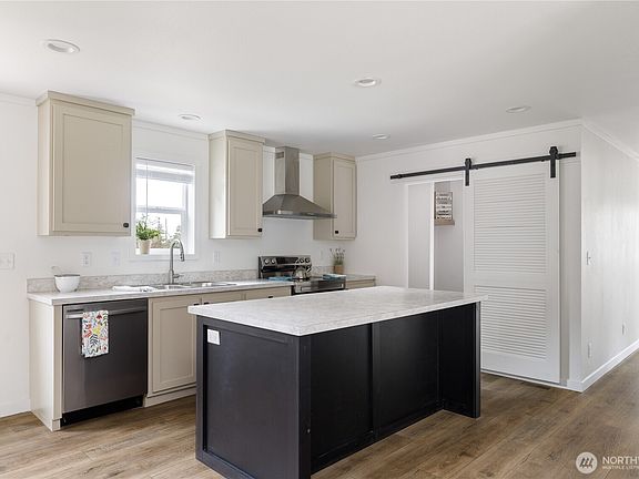 Be the first one to live in this beautiful 2025 Home on Wonderful Whidbey Island.  3 bedrooms, 2 full baths, open floor layout with walls for furniture.  Abundance of light from the many double pane windows.  This home, with its clean lines,  is filled with modern features from stainless appliances to barn door and large center kitchen island.  Finished off with white panel doors and trim to enhance the fresh clean look. All the bedrooms have walk in closets, vaulted ceilings and natural light.  There are plantation blinds throughout.  Nicely graveled driveway and walkway.  Mostly fenced backyard has room for fun and gardens.  A home to be proud of!!!
