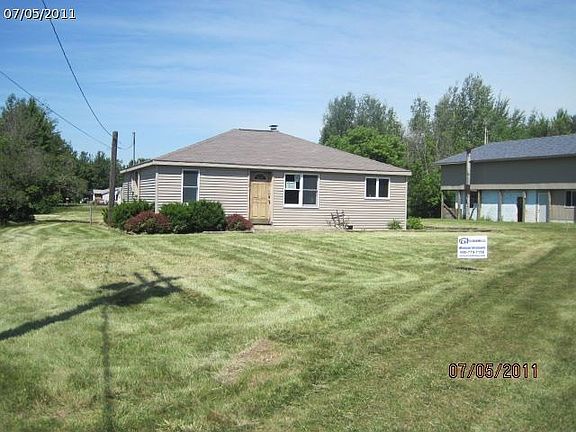 Exterior Features: Single story home. Panels on the sides of the home look to be in fair condition. Yard is large and looks clean. Two car detached garage, has broken door, will need repair. Overall exterior is fair. Interior Features: Interior condition is fair, some cleaning will be needed. Living room is large, carpet will need cleaning or replacement. Room includes a ceiling fan. Kitchen is complete with cabinets and counter tops. Hot water tank, furnace were found in the home.