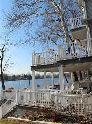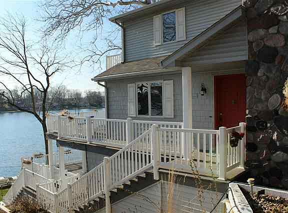 Commanding views - Sechrist Lake Exceptional property, bluff setting, shade trees Approx. 2400 sq.ft., 3 bedroom, 2 full-2 half bath Many recent improvements Multi-level decks, wonderful for entertaining Spacious living room and family room w/bar area 2 car attach. garage, concrete drive, ample parking All major appliances incl., furnishings, and more Maintenance-free decking, year around or seasonal living Sandy frontage, great swimming Access to 7 i
