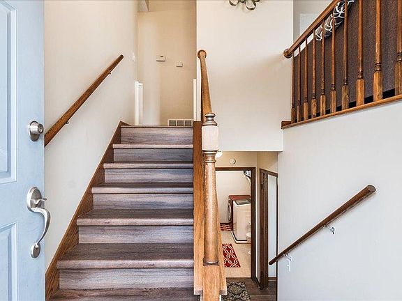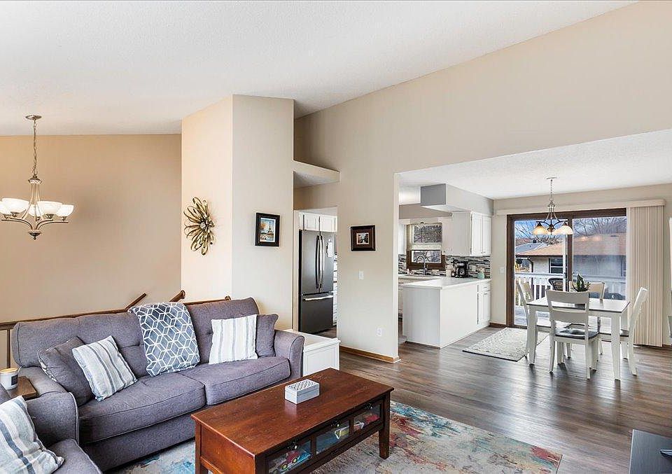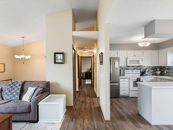 Talk about a stunner! This beautiful split level twin home is definitely one you won't want to miss. Imagine sitting in this beautiful backyard in the summer on the deck drinking your morning coffee while you enjoy the view overlooking the lake in the distance, the birds are chirping and the warm sun is on your face what a place to call home! Many highlights to mention but here are just a few: Open concept and vaulted ceilings in the central living area filled with lots of natural lighting. Primary Bedroom suite has vaulted ceilings as well as a giant walk in closet and a private on suite bathroom to boot! Lots of beautiful updates to see here! From fresh paint to luxury vinyl floors as well as a great updated kitchen with new refrigerator, countertops, backsplash, and new trendy hardware. Excellently designed and it is a well maintained home. Many new light fixtures and luxury vinyl floors through out and much more check out highlight sheet for additional information. Tour it today!