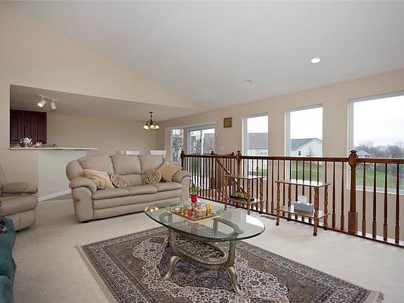Spacious atrium ranch built by American Heritage has great curb appeal with brick and stone front. Wood entry opens to formal dining room and vaulted great room with wall of windows and direct vent gas fireplace. Kitchen offers 42 inch cherry raised panel cabinets, Silestone solid surface counter tops, stainless steel appliances, ceramic flooring, breakfast with bay. Vaulted master bedroom has walk-in closet, luxury bath with adult height twin vanities, separate tub and shower. Three secondary bedrooms, hall bath, and main floor laundry round out the main level. Walk-out lower level has framed back wall and lots of potential for finish. Also included are newer roof with transferrable warranty, tastefully landscaped yard, patio and view of common ground in back, 3 car garage with insulated walls, AHS home warranty. Close access to Highways 94 and 364.
