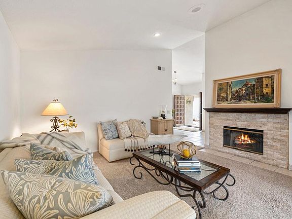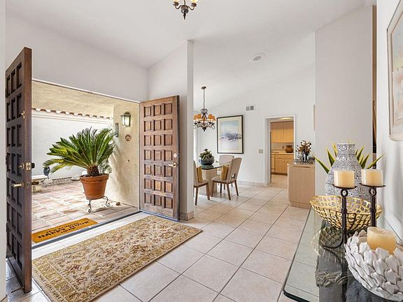 JUST REDUCED! Introducing this remarkable 3-bedroom residence with 2 baths, nestled in the tranquil Desert Breezes community. A picturesque private walkway bordered by vibrant citrus trees guides you to your exclusive double-door entry.Step inside to discover a thoughtfully designed layout: a welcoming living room at the forefront, a den/office to your right, and an elegant formal dining area to your left. The kitchen offers a captivating view of your private enclosed backyard, adorned with enchanting landscapes and lush greenery, creating a serene backdrop for your culinary endeavors. A sliding glass door provides access to this tranquil oasis.This home's den is perfect for accommodating guests or adapting to your unique lifestyle. The master bedroom offers a private courtyard and a spacious en-suite bathroom, ensuring your comfort and privacy.Adjoining the residence is a convenient 2-car garage, integrated into the property. The well-conceived floor plan enhances the flow of the space, creating an environment that balances form and function seamlessly.In the courtyard, you'll find beautiful rose bushes that add a touch of natural elegance to your outdoor space. This residence comes partially furnished, offering a head start on making it your own. Don't miss the opportunity to call this exceptional property yours.
