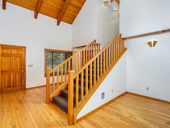 Serene country setting on this one acre waterfront property! Hiding away from the crowded city tucked in between the tall firs and Big Fall Creek lies this lovely two story charmer.  Seller lives in small house next door. Gorgeous water and sometimes good fishing from your own backyard! Two plus car garage foundation footings of 32x28 already poured by builder years ago.