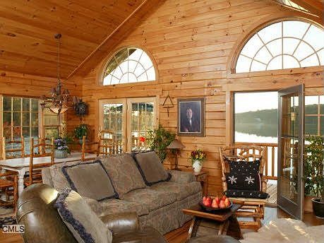Three acres and a beautiful Waterfront home in Kent Connecticut abutting 26 acres of Land trust. Uniquely valuable as built partially over the water on a private lake which has been described as \\\"pristine\\\". 235 feet\\\\\\\'pf lake front with gorgeous sunset views from all rooms and two decks overlooking the lake. Imagine swimming, water skiing, boating, fishing and skating right in front of the house.This beautiful year round two story log home is finished inside by skilled craftsmen making it luxurious, warm and impressive to visitors. Space includes a great room including living room with fireplace and dining room. Gourmet kitchen. Master bedroom and two guest bedrooms. Also on this 3 acre property you can add a 2nd home with commanding views of the Lake.