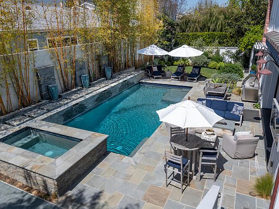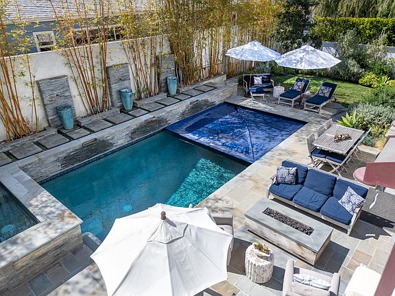 But what makes this newly constructed home truly special is its connection via 16' disappearing sliding glass doors to an expansive yard, sport court, outside entertainment area with fire pit, and best of all, spa and large heated pool. Complete with retractable cover, 650 sf radiant heated patio, water feature, and private outside shower, the pool and yard provide a safe, fun alternative to days at the beach.