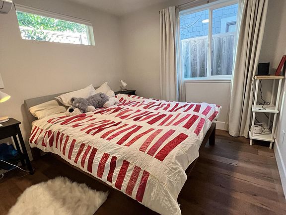This is a charming, brand-new, furnished (also available unfurnished or partially furnished), 2 bedroom eco-cottage in the garden behind a 1909 craftsman home. You'll love this inviting, efficient space with modern transitional finishes that give a nod to the classic front house. The home features 14 foot ceilings, a skylight, and many windows which create an airy, naturally lit space. The interior features hardwood floors throughout with Spanish tile in the bathroom and all brand-new appliances including a dishwasher and disposal. It also has a front loading washer and dryer and is wired for high speed internet. The cottage is on a quite street with a private gated entrance. It has a sunny front patio and garden and will be ready for the new occupants on March 26th. It includes one off street parking space with access to an EV plug. The location is highly desirable on a street with no through traffic. Whole Foods is a 3 block walk away, Rockridge and Elmwood shops are 5 blocks away, two different BART stops are each 10 blocks away, and the UC Berkeley campus is less than a mile away. Temescal and downtown Oakland are easy bike rides. This is a super location with excellent bike and walk scores. The house is in the desirable Peralta elementary school catchment and is just a block from the Escuela Bilingue. Includes shared off street parking. Tenant pays electricity, shares recycle/refuse and water with front house.