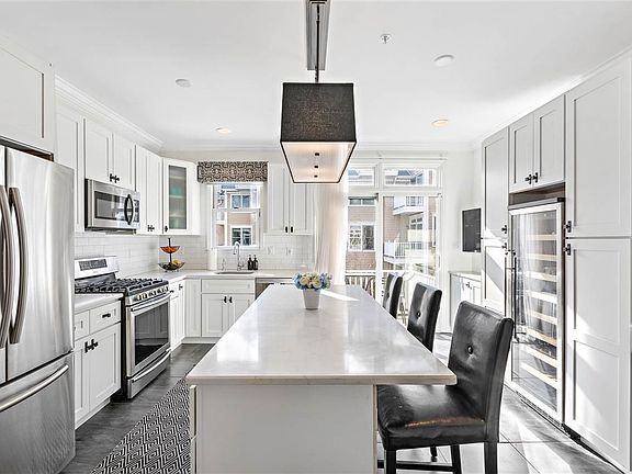 Available NOW! Welcome home to this desirable and fully renovated 3 bed 3.5 bath and one office, Essex style townhouse nestled within the prestigious Jacobs & Bulls Ferry with views of Hudson River. This 4 level residence accommodates luxury living with inspiring NYC views. There is room for every lifestyle, first floor family room is large enough to fit a pool table or simply be enjoyed as kids play area with a walkout patio, and garage that is currently being used as home owner's private gym. This home is fully organized with many built-ins to maximize the space and create more storage throughout. First floor built-in is customized and fitted a wine/beverage refrigerator. The second level has an expansive living area, a balcony along-side a state-of-the-art kitchen featuring stainless steel appliances, caesarstone countertops and an island, in addition to beautiful subway tile backsplashes and a large wine fridge. Second floor built-in has honed caesarstone that can handle hot dishes and is perfect for large parties. The 3rd level has a large master en-suite with a walk in closet, a second bedroom en-suite with access to a southern exposure balcony. In-laws suite on the top floor with full bathroom & a balcony with a view of NYC and the Hudson River and an office space multifunctional for kids sleepover or quiet enough to finish writing that memoire. Home also features wide plank hardwood floors and Hunter Douglas blinds throughout. With 2 car parking & washer/dryer room, this is truly a place you'll want to call home! The Bulls Ferry Community offers 2 pools,play area, Jacuzzi, 24/7 security, a free shuttle to/from Ferry Terminal & easy access to NYC!