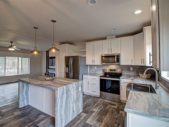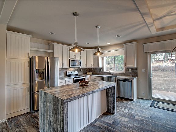 Beautiful timbered setting with a brand-new manufactured home on permanent cement foundation, offering 3 bedrooms, 2 bathrooms, and 1,560 sq. ft. of living space. This home sits on a 0.486-acre lot with a septic system & shared well. Enjoy the spacious 24’x24’ detached garage, a beautifully landscaped front yard with sod, underground sprinklers, privacy fence & extra parking. Relax on the covered front and back decks. Inside, vaulted ceilings, an electric fireplace & a 65" TV, additional storage space and laundry room add style and comfort. The primary bedroom features an ensuite bathroom with a large garden tub, separate shower & walk-in closet. Energy Star rated for insulation, appliances, and equipped with an electric forced air heating and A/C system. Seller in process of de-titling and certifying home for FHA & VA financing. Neighboring lot available. Centrally located between Whitefish & Kalispell. Call Matthew Hohnberger (406) 212-3600, or your real estate professional. This manufactured home has Energy Star Certificate of Compliance. R-11 blanket under entire floor and between I-beams, Walls are R-21 batt, Ceiling/Attic has R-40 blown-in insulation. See Energy Star Certification sheet in Documents. Home built in 2022 and brand new was moved once and placed this location in 2024.