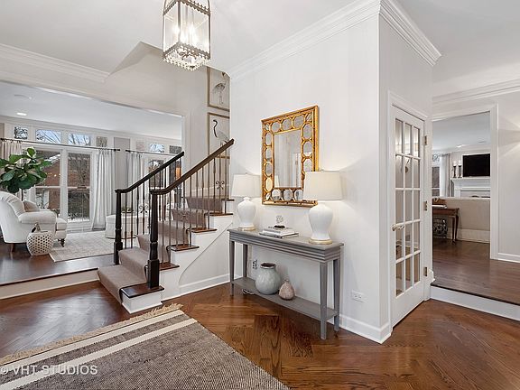 As you enter this naturally wooded cul-de-sac location you are met by a stately French inspired home with a large circle driveway. Surrounded by beautiful oak trees scattered over almost 2 acres of land the views from any of the many floor to ceiling windows are breathtaking. As you enter the gracious foyer offering 10 foot ceilings and a herringbone laid hardwood floor you feel both comfortable and welcomed. The first floor flow is easy and livable. With the abundance of space this home does not feel overwhelming, but sophisticated and elegant. Every room flows fluidly with the next with an open floor plan that allows for some definition of space. New hardwood flooring throughout the first floor is rich and timeless along with the interesting angles and substantial millwork. The renovated kitchen with elegant quartzite counter tops gleam across the very large double thick center island and guide your eyes out the corner wall of windows to views of the sparkling and stately rectangular pool and spa. Quality was not spared when this home was built. Marvin windows, solid wood 6-panel doors, heated 4-car garage with epoxy floors, whole house generator, approximately 10-foot basement ceiling, large stone patio, walk-in pantry, butlers pantry, front and rear staircases, 2nd floor laundry room, stunning light fixtures and so much more. This sophisticated and elegant home is a pleasure to see. Agent owned property.