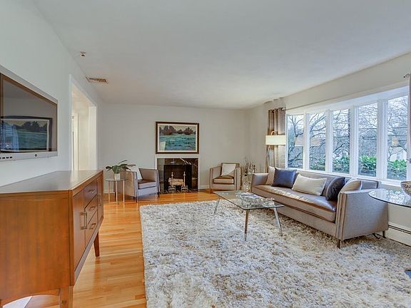 This 4-bedroom, 2.5-bath split-level home is situated on a 15,000 square foot corner lot, with a circular drive and mature plantings and trees. This location provides easy access to Boston, Chestnut Hill shopping, and it's within minutes to Memorial Spaulding, Oak Hill Middle School, and Newton South High School. Entering the home, the inviting slate foyer gracefully opens to a large 22' X 13' living room with bay windows and fireplace, which flows seamlessly to the formal dining room, open to the kitchen on one side and leading to the sun room on the other. The kitchen features a well-proportioned layout with center island, gas countertop range, and double wall ovens. The sun room is open on three sides with sliding glass doors and a vaulted, beamed ceiling. On the second floor, four generous bedrooms and two full baths, including the master bedroom with en suite bath. The lower level offers another walk-out play room, cedar closet, and storage aplenty. Awaiting your personal touches!