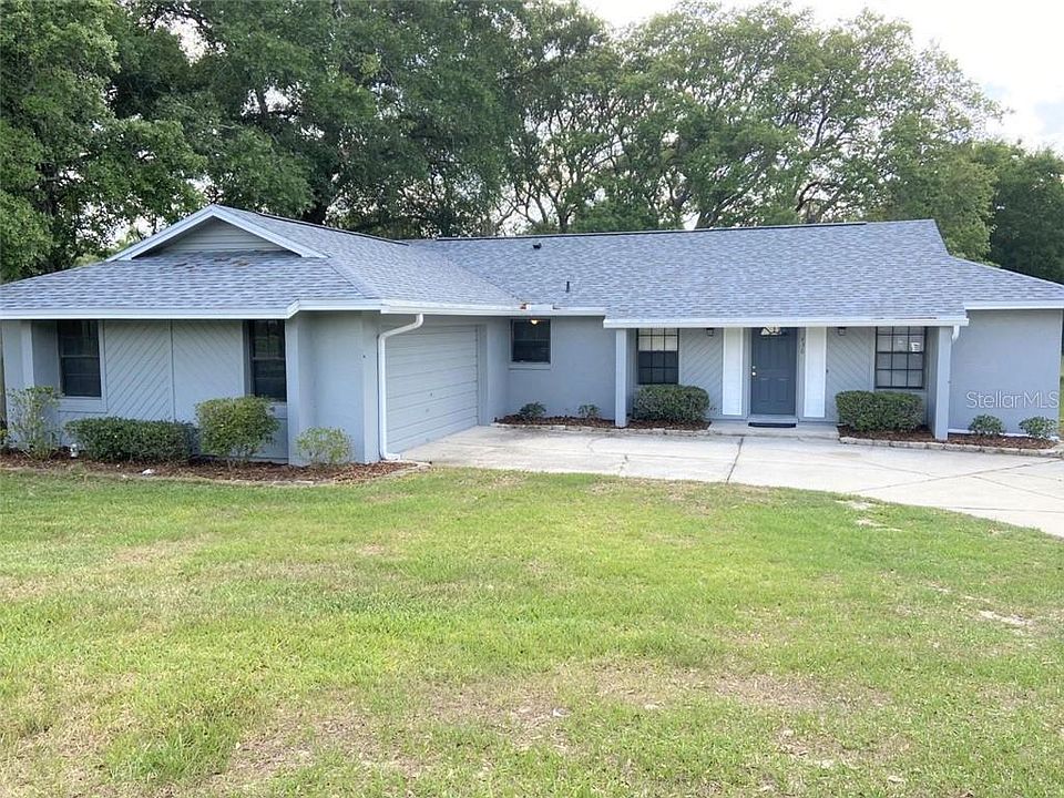 Amazing opportunity for a buyer to purchase a 4 BEDROOM home with BRAND NEW ROOF, approximately 1/3 ACRE of land, and absolutely NO HOA for under $240k. Opportunities like this don't come by often or last long! This East facing home is solidly built with CONCRETE BLOCK CONSTRUCTION and was REPIPED IN 2012. It features a huge living room area, a clean and updated kitchen, a formal dining area, and a fantastic split plan with two bedrooms and a bath on side, and the master and 4th bedroom on the other side (that 4th bedroom could also easily be used as a very convenient nursery or den due to it's proximity to the master). Relax in the spacious back yard with it's fire pit area, the graceful and mature trees, and benefit from the additional privacy and green views due to the retention area in the back. Your rear neighbor's house is approximately 275 ft away! Lots of peace and privacy. As for storage space, the 2 car garage has built in storage, the CLOSETS HAVE BUILT IN ORGANIZERS and the home has several linen/coat closets so that you can have everything in its place. You won't find another home like this! Lovingly cared for, this is the BEST PRICED 4 bedroom home in the entire zip code. A full walk through video is available and private showings can be easily scheduled.