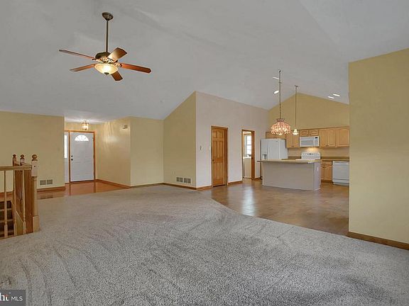 Enjoy the convenience of one level living. Greeting you is an open and vaulted living area. Spacious Kitchen w/center island breakfast bar and walk in pantry. Master bedroom w/walk in closet and ensuite bath featuring a corner whirlpool tub, and double bowl vanity. There are two additional bedrooms and full bath, laundry room, and enclosed sun porch. Expansive lower level for additional future living space has double entry door leading outside. One of the more private lots in the community w/wood line at the rear.