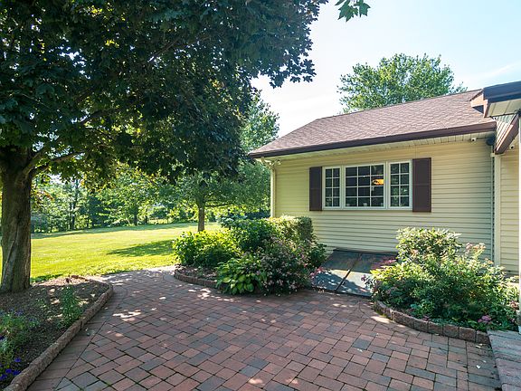 Custom built on 12 acres private ranch home with large living room, dining room combination, eat in kitchen and delightful covered stone patio. 2 x 6 construction built with energy efficiency in mind. 3rd bedroom could also be an office. Large walk out basement with a woodstove and a workshop area with built in work benches and shelving. The grounds are beautiful, bordered by a mature tree-line and creek. Also has a fire pit for the occasional bonfire. Great potential here for an equestrian facility. For the developer, a 4 lot subdivision has been started. Lots of opportunity for this wonderful property.