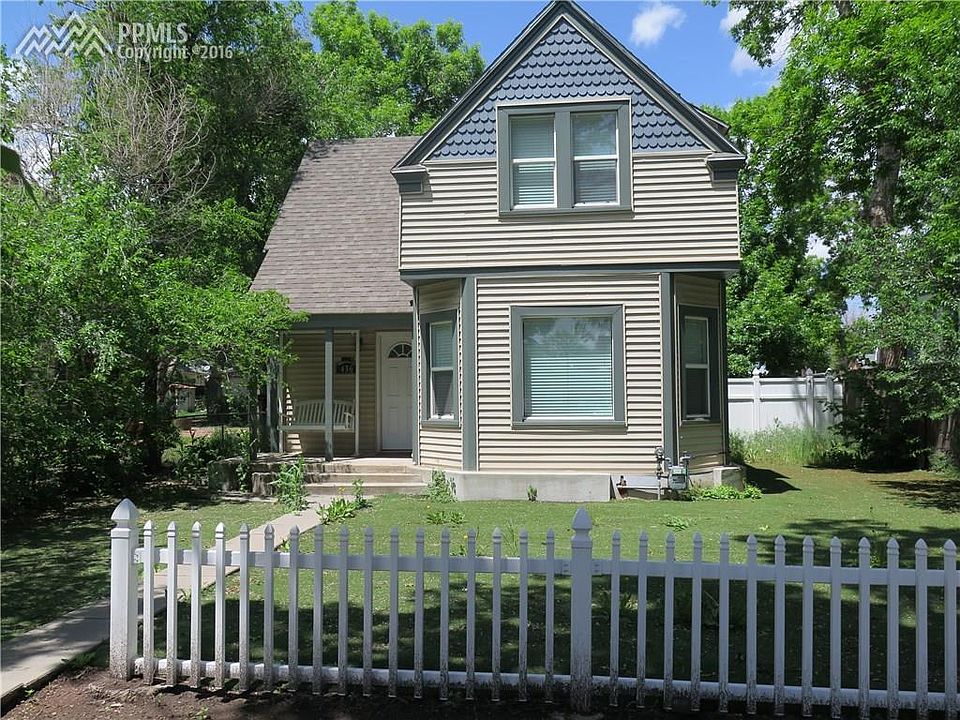 Beautifully updated turn of the century home within walking distance of Downtown. Lots of natural light and open floor plan welcomes. User friendly kitchen with newer 42" cabinets, granite counter tops, stainless steel appliances & pantry too. Gas range in kitchen island. Granite bar open to dining room and living room. Recessed lighting, updated lighting fixtures and hardware. Vinyl windows and blinds. Three bedrooms total,with one on the main that would work great as an office. Laundry on main with stackable washer and dryer included. Two full baths, both with claw foot tubs, wainscoting, updated paint, newer carpet, newer flooring. Newer gas stove on main level is primary source of heat which heats house nicely. There is additional electric heat upstairs, but the Seller finds whole house comfortable with gas heat as heat rises to second level. Low maintenance vinyl siding. Large 16 x 32 shed in back is rough but has potential. Large fenced backyard great for home gardening, pets, or entertaining. Truly warm and inviting home complete with white picket fence and front porch swing.... and so convenient to downtown amenities.... shopping, hospital, parks, schools, and entertainment. Looking for character in a home, this one brings it on!!