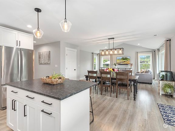 Absolutely stunning like-new rambler on huge .5 acre +/- parcel - great location on the edge of town, minutes from town amenities. Well-appointed details t/out this like-new home inc laminate wood flooring nearly everywhere in home, AC, vaulted ceilings, huge windows & more. Extra-large driveway w/RV parking pad & excellent curb appeal; covered front porch to enjoy year-round. Great floor plan w/vaulted living room open to large dining & HUGE kitchen. Incredible storage t/out including cabinets galore. Granite counters, full backsplash & ss appliances. Owner's suite separate from other bdrms w/ensuite dual vanity bathroom & large walk-in closet. The ginormous backyard & peaceful views of the foothills complete this picturesque property!