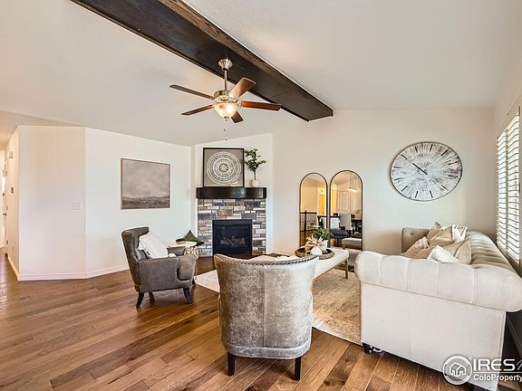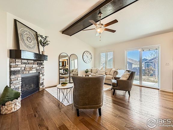 Welcome to your dream home in the heart of Berthoud with incomparable value! This beautifully maintained 5-bedroom, 3-bathroom ranch-style home offers an open, spacious layout perfect for everyday living and entertaining. Situated on a quiet, friendly street, this home provides a peaceful retreat within walking distance of the community pool while still being close to local schools, parks, and major commuting routes. The main floor features a generous living room anchored by the stone gas fireplace that flows seamlessly into the well-appointed kitchen and dining area. Enjoy an abundance of natural light and easy access to the beautifully landscaped backyard with a large patio perfect for gatherings. Relax and unwind in the primary suite with vaulted ceilings complete with a 5-piece ensuite bathroom and walk-in closet. With 4 secondary bedrooms, there is plenty of room for family, guests, or a dedicated home office space. The expansive finished lower level offers endless possibilities for extra living space, with two additional bedrooms and a full bath.