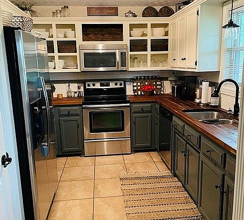 Lovely single story ranch! Spacious living room with vaulted ceilings. Hardwood and ceramic tile throughout with new carpet in two guest rooms. Warm butcher block counter tops in the kitchen. Large oversized garage with half circle driveway and plenty of parking. Home also has a roomy covered deck with plenty of room to entertain outside.