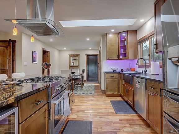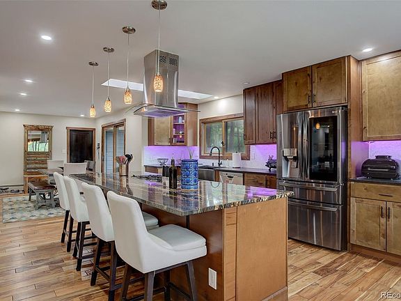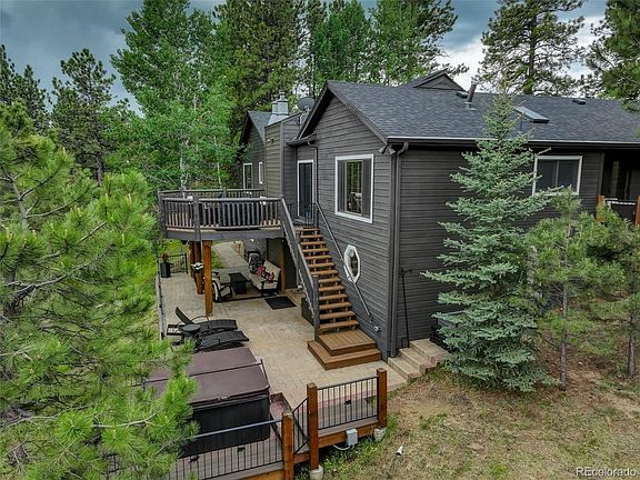 Welcome to your dream home! Pride of ownership is obvious when you arrive, a perfect blend of tranquility and convenience, featuring luxury upgrades throughout a beautifully updated and lovingly maintained home. This stunning house is ready to impress with its spacious layout and luxurious features. Situated on a 1.12-acre lot, this property offers breathtaking views of Elephant Butte from the custom deck that overlooks a peaceful meadow, where you may catch a glimpse of Evergreen's wildlife. Step inside and be greeted by the elegance of Tobacco Road Acacia Hardwood flooring that flows throughout the main floor adding a touch of warmth and sophistication to every room. The kitchen features stunning granite countertops, and high-end, stainless-steel appliances that will surely delight any chef. The attached walk-in pantry boasts custom designed cabinets, providing ample storage space for all your cooking needs. With 4 bedrooms (including main floor Master Suite) and 3 bathrooms, there is plenty of room for the whole family and friends. A beautiful stone fireplace serves as a focal point in the great room while creating a warm and inviting atmosphere. Additionally, the lower level offers several features, including a wet bar for entertaining guests, a media room designed for an immersive entertainment experience, and a dedicated office for when work calls. The lower level of the house opens up to a spacious covered patio, providing a seamless transition from indoor to outdoor living. After a long day, unwind in the 8-person Cal Spa hot tub, as you take in the stunning, star-studded night sky. To top it all off, this house features a two-car garage, providing convenient parking and storage options. People from all over the country move to the quaint town of Evergreen for the Colorado lifestyle, great schools, conveniences, quick access to the Mountains and nearby Denver Metro. Don't miss the opportunity to make this beautifully remodeled house your new home.