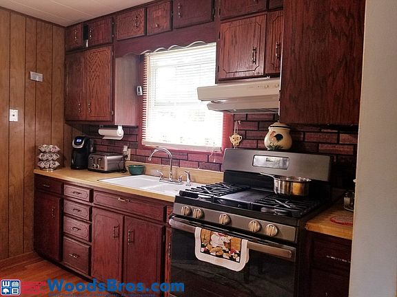 • Kitchen: Gas Range, Refrigerator, Range Hood, Wood