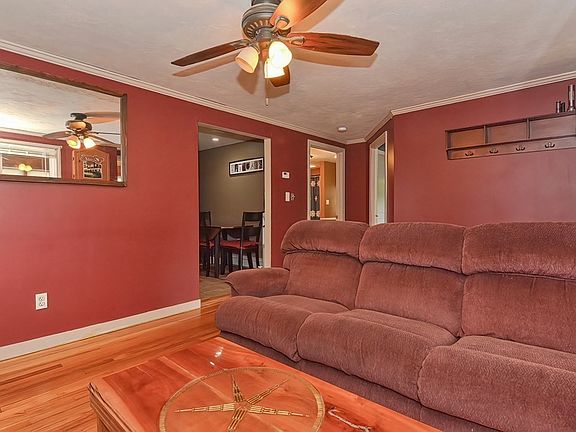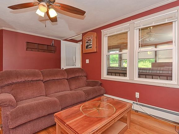 Looking for a starter home or downsizing, this charming ranch provides single level living with 2 decent sized bedrooms and a large bathroom with laundry. The living room, featuring a pellet stove, and 2nd bedroom have beautiful newly finished hardwoods. The main bedroom has a newer carpet, replaced in 2019, and overlooks the private backyard on just under an acre. The shed and full basement are great spaces for additional storage. The driveway fits two cars, convenient for off-street parking. Bonus feature is the enclosed front porch which provides added space leading to the side deck. Most exterior updates were done prior to current ownership: APO roof 2008, vinyl siding and windows 2012. This property is in a great commuter location, close to major routes. *HIGHEST & BEST offers due Tues. 8/23 at 12 noon*