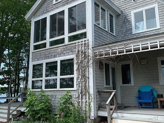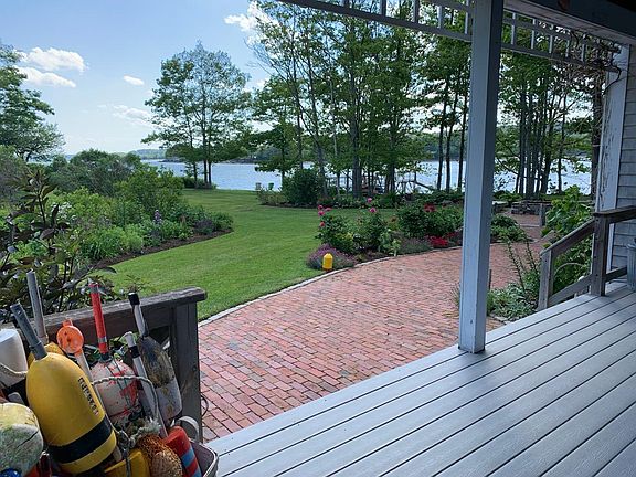 Fully furnished long term rental in Harpswell, 570 feet of waterfront, just 8 miles to the center of Brunswick. Stunning views from just about every room of this 2700 s.f. cedar shingled home. Brick walkways, covered wrap around front porch, tiled entry and mudroom. This home is full of light with an open concept kitchen, living room, and dining room. Honed granite counter tops, walk-in pantry with microwave, stainless steel appliances, and 5 burner gas stove. Hardwood floors throughout. First floor office and separate 3-season sunroom leads out to large waterside back deck. Second floor master bedroom suite with 3-season private south facing sunporch overlooking Harpswell Sound and gardens. Two additional 2nd floor bedrooms, full bath, washer/dryer, and open concept 800 sqft bonus room with large screen TV and area for a second office or play area over extended 2-car garage. The property is fully and professionally landscaped with a large outdoor fire-pit as well as optional access to deep water dock on Harpswell Sound. No pets and no smoking of any kind. Credit check (paid by prospective tenants), employment verification, and references required. Owner pays HOA, water, septic, landscaping, plowing. Tenant pays electric, oil/propane, cable/internet.