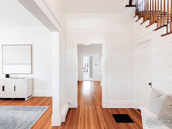 Mapleton Hill dreams come true in this sun-drenched four-bedroom, three-bathroom Edwardian residence featuring impeccable updates, two separate studio/guest spaces and breathtaking outdoor space with huge Flatiron views on this coveted neighborhood's best block. Built in 1903, this incredibly maintained home welcomes you with a delightful covered porch. Inside, soaring ceilings, extravagant millwork and beautiful windows create an elegant ambiance. Entertain in the charming dining area featuring a bay window and built-in cabinet. The contemporary kitchen nods to the home's historic origins with Shaker-inspired cabinetry topped by caesarstone counters and marble backsplashes. The adjacent sunroom makes a wonderful family room, while an alcove with a built-in desk is perfect for working or studying from home. Ascend the grand staircase to discover an expansive primary bedroom featuring plenty of room for a king-size bed and a spacious sitting area alongside the home's signature triple window. Head to the extraordinary upper deck to take in jaw-dropping southern sunlight and unobstructed Flatirons views. Enjoy al fresco entertaining in the home's backyard, a fully fenced sanctuary designed by Marpa Landscape. The rear porch overlooks large patio areas, a gas grill, a fire pit and a custom copper plunge pool/hot tub, all accented by tall trees, native grasses and lush lawns. The handsome carriage house two-car garage is topped by guest quarters featuring vaulted ceilings and an updated bathroom. A separate 300-square-foot studio is perfect as a home office, fitness studio or storage. While this property is landmarked, it can be further expanded to create more living space if desired. In this magnificent Mapleton Hill Historic District location, you'll enjoy wonderful tranquility and the historic neighborhood's namesake maple trees with multiple trailheads, Downtown Boulder and Pearl Street, all just minutes from your front door.