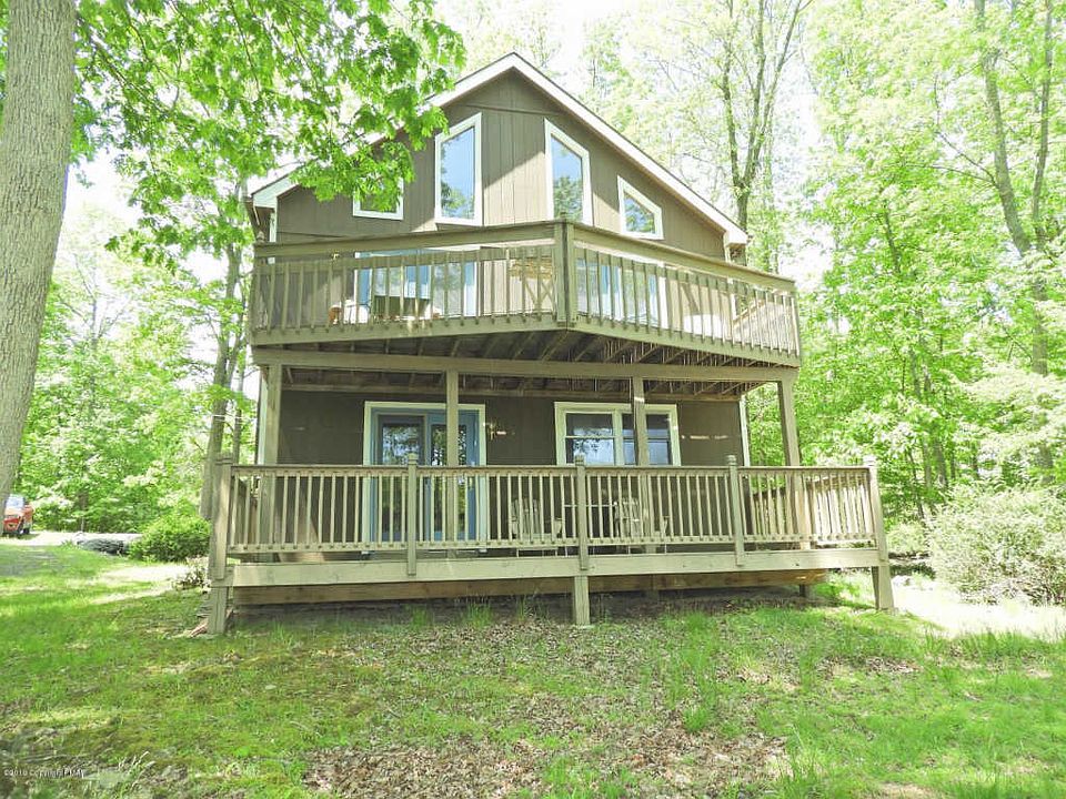 LAKEFRONT 3 Story Chalet w/ 3 Bds 2.5 Baths. OPEN Living Dining Combo w/ Cathedral Ceilings. Laminate Floors & Stone Fireplace & Sliders to Upper Deck w/ GREAT View! Kitchen w/ Good Amount of Counter Space. First Floor Master Bed & Bath. 2 Bds & Bath on Second Floor, Lower Level Family Room & Slider to Lowered Covered Porch. 1 Car Garage in Amenity Filled Penn Estates JUST 10 mins to DWG & 90 Mins to NYC! Call TODAY to Schedule your PRIVATE Showing!