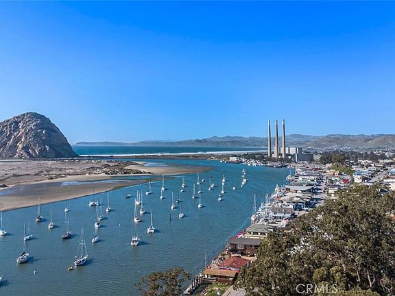 Discover the epitome of coastal elegance in this stunning 2-story home, boasting breathtaking views of Morro Rock and the bay right across the street, conveniently situated opposite a park for endless outdoor enjoyment, and just a short walk to Main Street, Morro Bay where you'll find a variety of restaurants and shops to savor. The main level invites gatherings with two spacious living rooms: a formal living room featuring a grand picture window framing those Bay and Morro Rock vistas, and a cozy family room anchored by a double-sided fireplace that seamlessly warms the adjacent formal dining room, which is enhanced by subtle mood lighting in the ceiling molding. Entertain in style in the gourmet kitchen, showcasing granite countertops, white cabinets, a 5-burner gas cooktop, double ovens, microwave, under-cabinet lighting, recessed lighting, and a convenient center island. A well-appointed half bath downstairs. The laundry room with a sink and window adds practicality downstairs, complemented by a central vacuum system for effortless maintenance throughout the home. Ascend the hardwood stairs to a landing with built-in cabinets, leading to three bedrooms, including a luxurious master suite with a large sitting area, private balcony overlooking the iconic Morro Rock and Bay, and an opulent master bath offering dual vanities, jetted soaking tub, separate shower, private water closet, and expansive walk-in closet. The upstairs also includes two guest bedrooms with a connected bath featuring a tub/shower combo. Outside, enjoy a private, lush backyard and a 2-car garage with cabinets, making this home a perfect blend of comfort, luxury, and prime location.