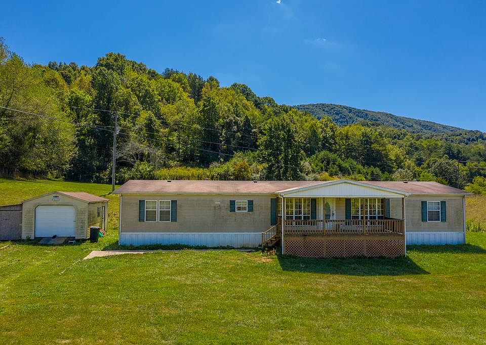 4 BR 2 BA Doublewide on +/-2.59 acres in Bland County, VA. Home built in 2002 and consists of 2,356 total finished sq. ft. Existing appliances include, range/oven, microwave, refrigerator, dishwasher, washer, and dryer. Large master suite and master bathroom with walk in closet. All other bedrooms located on opposite end of doublewide. Covered front porch and open deck at rear. Nice level to rolling yard which is easy to maintain. Fronts state maintained paved road and located out in the country away from the hustle. Outbuilding for storage and gravel driveway. Some regular routine maintenance needed, but with just a little TLC, this home has potential to be very nice.