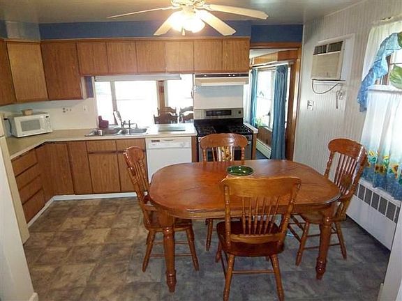 Spacious cape on tree-lined street features new bathroom, updated kitchen, newer furnace with 2-zone heat, 6-yr old roof, partially finished basement, attached garage & deck. Oil tank in basement.