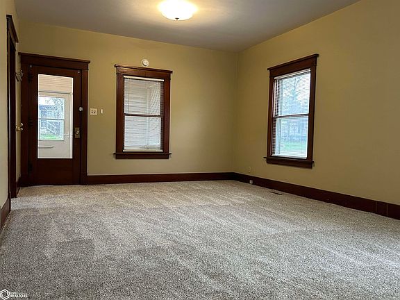 This two BR, ranch style house, recently painted & carpeted (2025), would make an economical home or income-producing rental property. A large back yard provides space for outdoor entertaining, gardens, games & a play area. The exterior of the home offers low-maintenance steel siding. There's an attached garage, with an updated garage door & tract. A walk-in door also accesses the garage. A front storm door (2025) opens into an east-facing porch--an additional area in which to enjoy time with friends, or, relax with a good book. The porch, with newer windows, leads directly into the LR...which is spacious enough to accommodate a dining set at the far end. Natural light flows into the LR/dining area from east & south-facing windows. Place a table by the west-facing kitchen window to enjoy a view of the gardens & play area. A refrigerator & an electric stove (both 2020) will be included with the sale. There is one BR on the main level, along with a second room which may be used as a BR (no closet). The bath, separating the two BRs, features a new door, & a combination tub/shower with an updated tub surround. An unfinished attic provides an opportunity to create another BR, office, play area, etc. The unfinished basement, with washer & dryer (2020) offers several storage areas. The central A/C unit was new in 2021. The water softener is owned. Breakers have been installed.