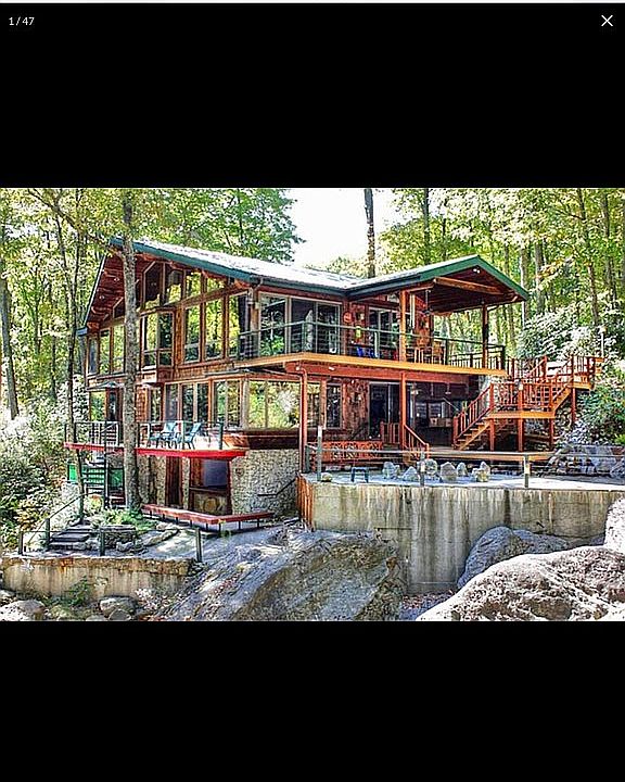 - Lot Features: Mountain View, Wooded, Views, Private, Year Round View, Sloping, Stream/Creek, Natural Waterfall