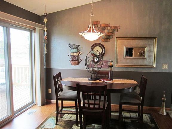 Stunning 3 bedroom walk out in exceptional condition located on a quiet court. Inviting entry to welcome your guests. Decorative tasteful touches throughout. Open floor plan featuring vaulted ceilings. Wonderful kitchen features cabinets galore and updated counters. Dining area with room to accommodate your oversized table and sliders to the deck which overlooks a peaceful park like setting with no backyard neighbors and sprinkler system. Spacious living room accented with bay window. Relax and enjoy the huge family room with gas fireplace and walkout to fenced backyard with a great patio to gather friends for an evening bonfire. Recent updates include new carpets and flooring on the main floor in 2013. New kitchen and living room windows, lower level carpet, flooring in entry and bath in 2012. New shingles in 2011. Don t miss this extraordinary home!