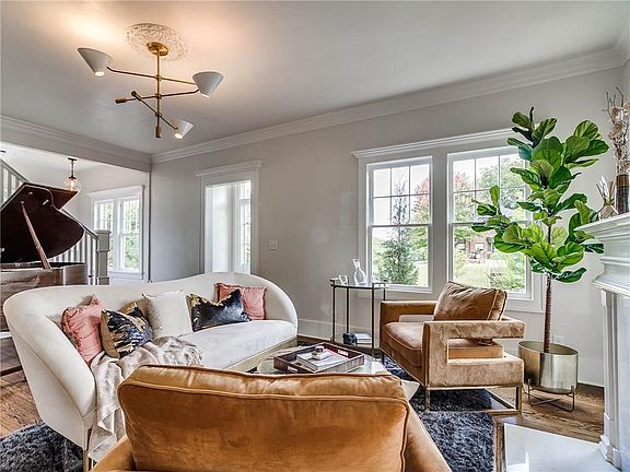 Perched atop a hill on a generous corner lot on gorgeous tree-lined street, this impeccable, fully restored Colonial home was once the residence of the Fred Jones family. This Heritage Hills estate features a stunning chef's kitchen with custom cabinetry, quartz countertops, a 48" Wolf gas range, 48" Sub-Zero refrigerator, Sub-Zero beverage refrigerator, dual-zone Sub-Zero wine refrigerator and Wolf microwave/warming drawer. The stunning master suite is complete with with Italian marble floors, a rainfall shower, custom-built walk-in closet and separate sitting area. The home features two spacious living areas great for formal and informal living. The restoration also included several energy saving features, including new insulation and a Navien tankless water heater. The home also has two parking areas and a detached guest house, complete with a kitchen and bathroom not included in home sq footage or room/bathroom count. Owner/Agent.