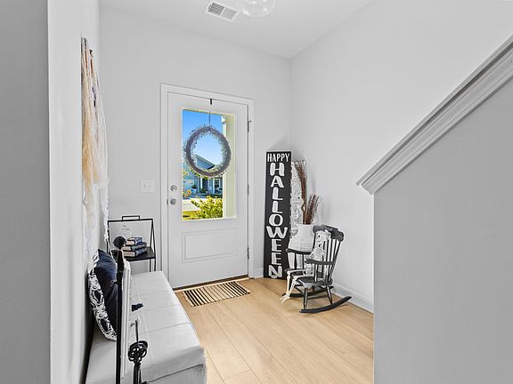 Situated on a spacious homesite that backs up to peaceful HOA greenspace, you'll enjoy extra privacy and a lovely natural backdrop from your covered back porch--perfect for relaxing or entertaining.Step inside to find an inviting layout with a large flex room near the front of the home, ideal for an office or sitting area, and an open-concept living area that flows easily into the kitchen and dining space. Designed with a coastal-inspired palette, the home features white and chrome finishes with subtle touches of aqua blue for a fresh, airy feel.The kitchen is a showstopper, featuring 42'' shaker cabinets, a center island with quartz countertops, stainless steel appliances, pendant lighting, a trash pullout, and a walk-in pantry for ample storage.Upstairs, wood stairs lead to a spacious loft that's perfect for a second living space, playroom, or media area. The owner's suite overlooks the backyard and includes a spa-like bathroom with a tiled shower and bench seat, dual vanities with quartz tops, and an expansive walk-in closet. Three additional bedrooms and another full bathroom complete the upstairs, offering plenty of space for everyone. This home combines modern style with easy living move-in ready and waiting for you to make it your own.