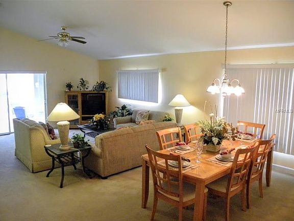 Beautifully maintained and fully furnished 4/3 vacation home. The curb appeal may draw you in but this turn-key home's interior just might keep you looking. Home features dual master bedrooms, sliding door access to the pool from the great room and master bedroom, in-kitchen breakfast nook, a great room with plenty of room for all, and vaulted ceilings. No immediate rear neighbors provides for an extra level of privacy to this beautiful west facing pool and lanai. With sun touching the pool from mid-morning until sunset every day you may not need the pool heater, but it's there in case you want it. New A/C system installed this year. Home is a short term rental and professionally managed. All bookings can covey with sale.