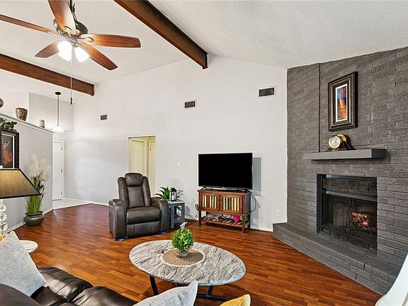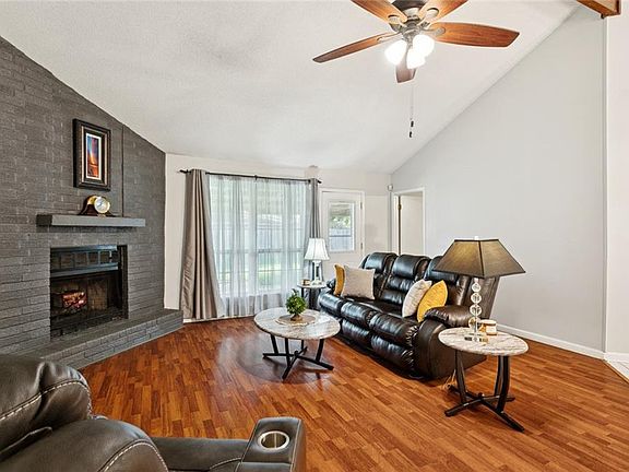 New roof, new electric panel, and new AC! No flood insured requred. This well-kept and beautifully maintained home is located in the heart of Slidell in a quiet neighborhood with access to a community pool. The split floorplan offers comfort and functionality, while the large kitchen features stainless steel appliances and opens seamlessly to the spacious living room. High ceilings with wood beams and a wood-burning fireplace create a warm, inviting atmosphere. The home boasts no carpet, ensuring easy maintenance and a fresh, modern feel.
