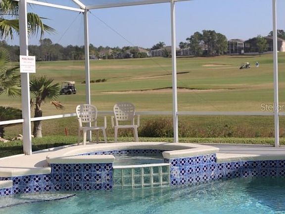 Beautiful home on the sought after golfing community of Highlands Reserve. Ideal for restaurants, shopping and of course the theme parks. The pool overlooks the fairway, so no rear neighbors and what a view it is. Enjoy your evenings dining al fresco, or bubble away in your very own spa. The split floor plan lends itself to a very spacious kitchen overlooking the family room. This home has a formal dining room and living room. The master bedroom is a generous size with a rear sitting room/den or study overlooking the pool deck. The bathroom has twin vanities garden tub and separate shower stall. The garage has been professionally converted into a game room which is under air, independent of the main home. The conversion can easily be reversed if desired. This home has been maintained to a high standard inside and out. You won't be disappointed. Bring your buyers.